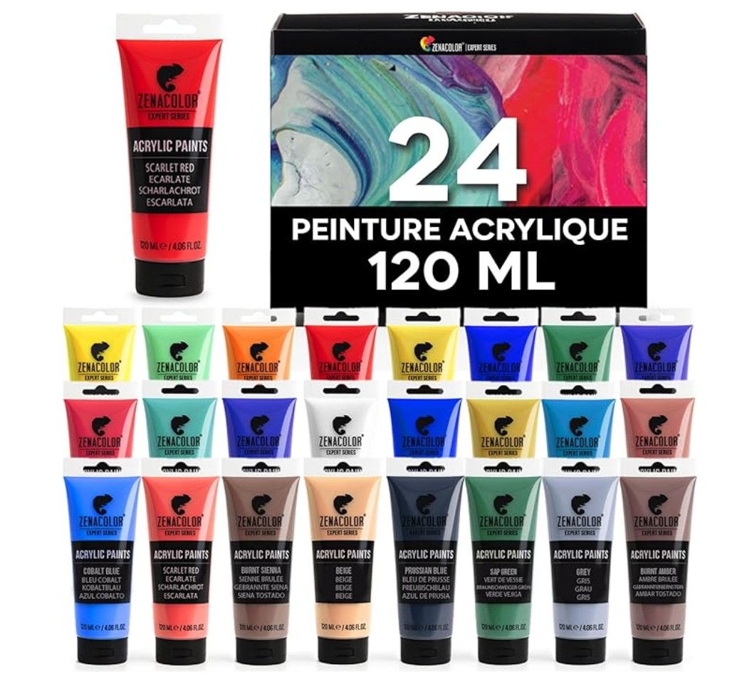 - LAISSEZ VOTRE CRÉATIVITÉ S’EXPRIMER – Notre set de 24 tubes de peintures acryliques est idéal pour l’artiste que vous êtes, débutant ou professionnel. Les peintures Zenacolor peuvent être utilisées sur de nombreux supports : canvas, toile a peindre , bois, papier, carton, plâtre, plastique, métal et plus encore.